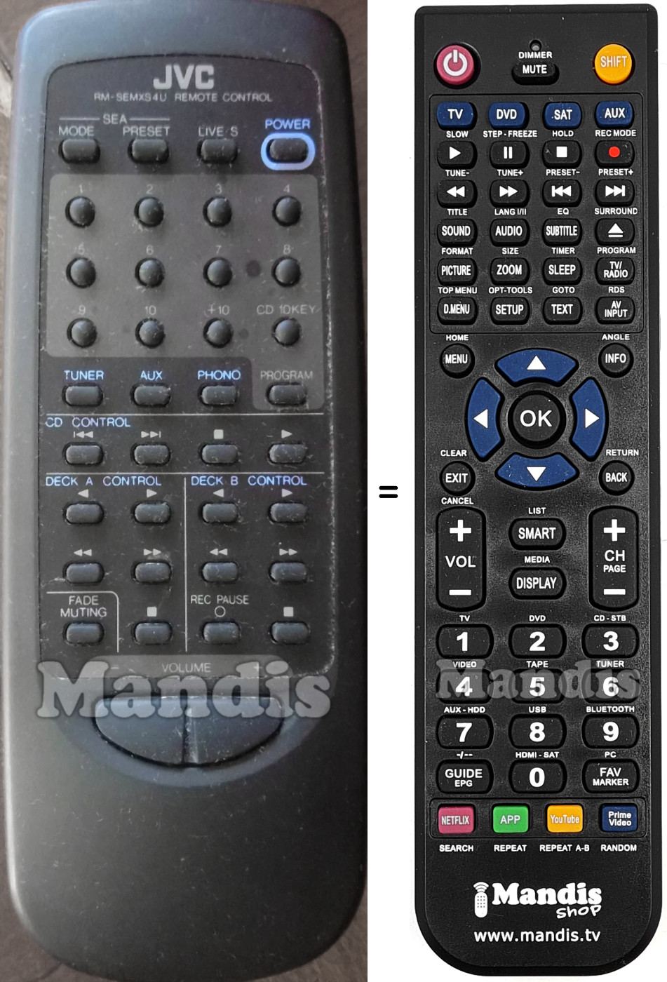 Below, we will show you the correspondence between each button on the original remote control and the button that performs the same function on the replacement remote control. In some cases, you may need to press the SHIFT key before pressing another button to perform certain actions. These additional functions are often not widely used and are included to facilitate understanding of the replacement remote control, or because the original remote control has more buttons than its equivalent.