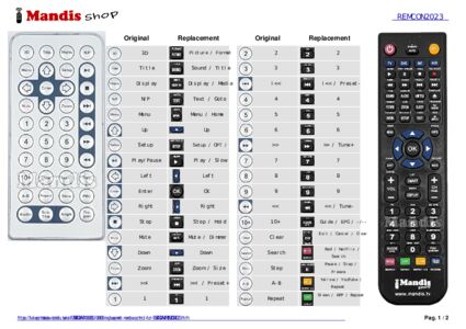 1. Look at the images of the two remote controls: the original (left) and the replacement (right).