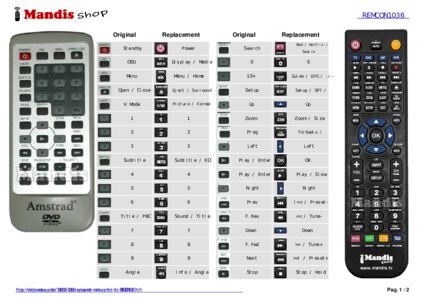 Home > Brands > Remote controls Amstrad > Remote control for Amstrad REMCON1036