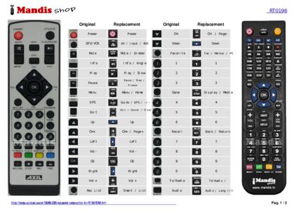 This remote control fully replaces your RT 196 (RT0196) and offers all the functions of the original.
