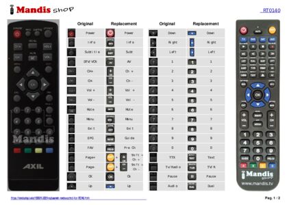 Home > Brands > Remote controls Axil > Remote control for AXIL RT0140