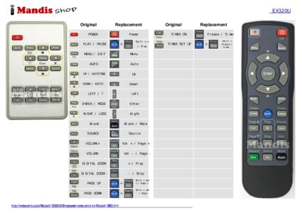 Below, we will show you the correspondence between each button on the original remote control and the button that performs the same function on the replacement remote control. In some cases, you may need to press the SHIFT key before pressing another button to perform certain actions. These additional functions are often not widely used and are included to facilitate understanding of the replacement remote control, or because the original remote control has more buttons than its equivalent.