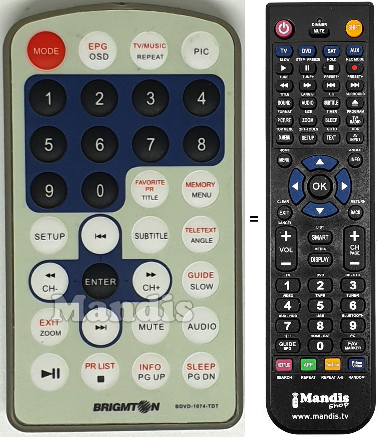 Home > Brands > Remote controls Brigmton > Remote control for BRIGMTON BDVD-1074-TDT