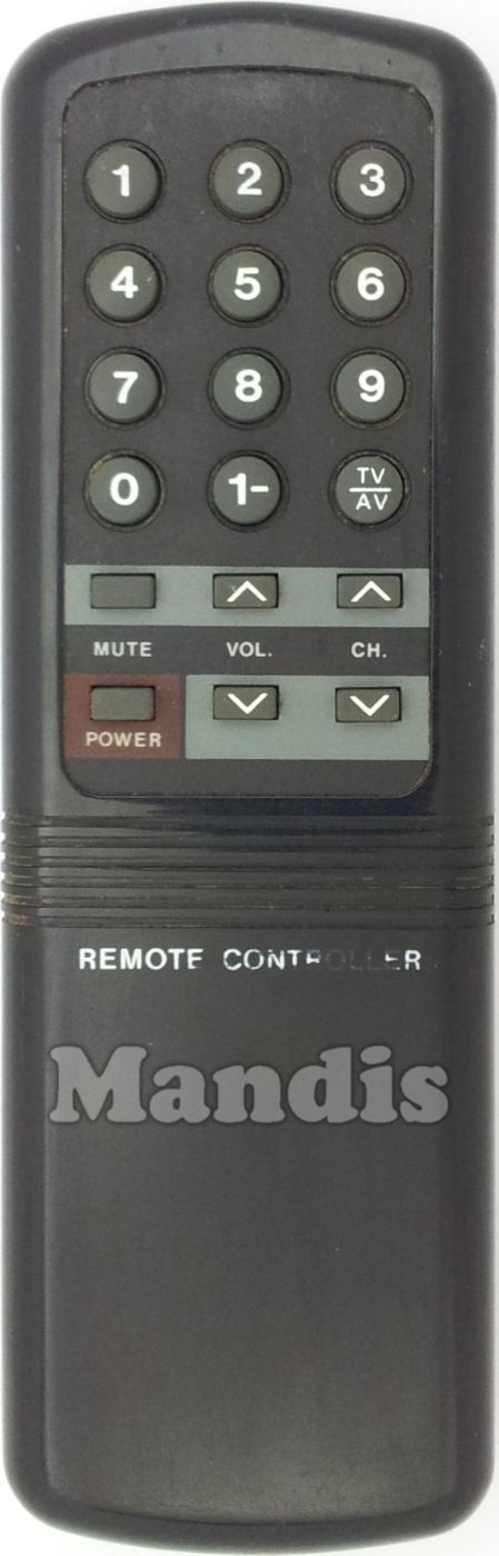 1, 2, 3, 4, 5, 6, 7, 8, 9, 0, 1-, TV/AV, Mute, Power, Vol+, Vol-, CH+, CH-