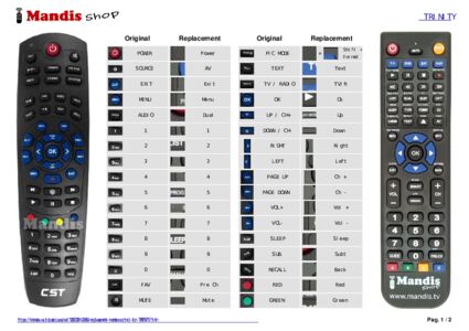 Below, we will show you the correspondence between each button on the original remote control and the button that performs the same function on the replacement remote control. In some cases, you may need to press the SHIFT key before pressing another button to perform certain actions. These additional functions are often not widely used and are included to facilitate understanding of the replacement remote control, or because the original remote control has more buttons than its equivalent.