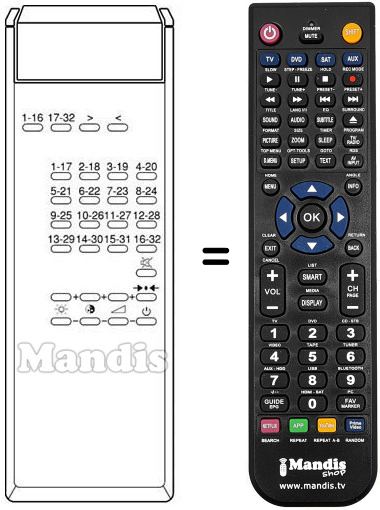 Remote control to replace the original and all its functions.