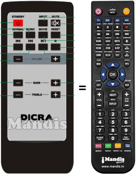Remote control to replace the original and all its functions.