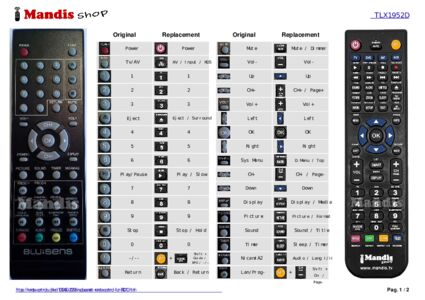 A document is included to help you use the new remote control easily, showing the button correspondence.