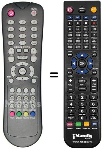 Remote control to replace the original and all its functions.