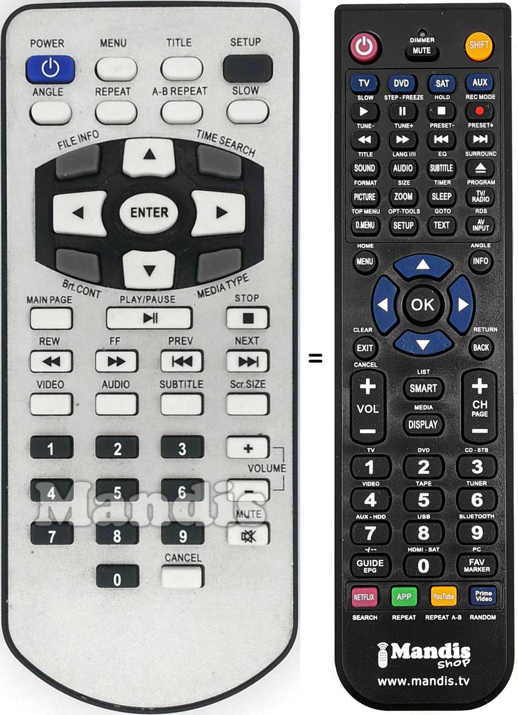 Remote control to replace the original and all its functions.