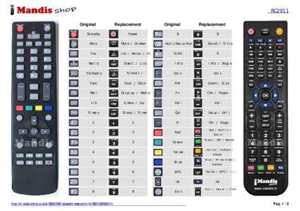 This remote control fully replaces your RC2911 (30074309) and offers all the functions of the original.