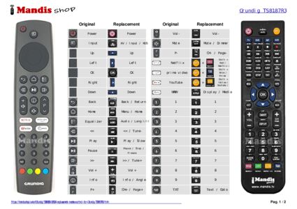 1. Look at the images of the two remote controls: the original (left) and the replacement (right).