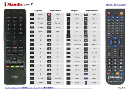 A document is included to help you use the new remote control easily, showing the button correspondence.