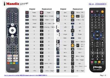 1. Look at the images of the two remote controls: the original (left) and the replacement (right).