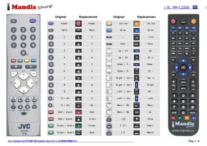 This remote control fully replaces your RM-C 1508 (TV / DVD) and offers all the functions of the original.