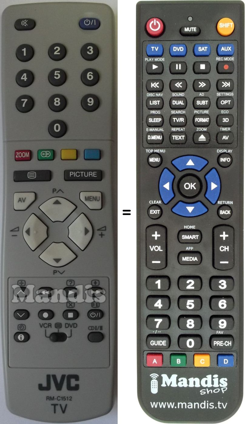 This remote control fully replaces your RM-C1512S (VE30021287) and offers all the functions of the original.