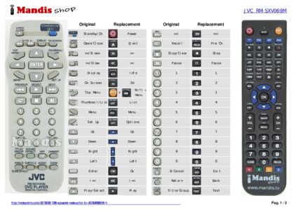 Below, we will show you the correspondence between each button on the original remote control and the button that performs the same function on the replacement remote control. In some cases, you may need to press the SHIFT key before pressing another button to perform certain actions. These additional functions are often not widely used and are included to facilitate understanding of the replacement remote control, or because the original remote control has more buttons than its equivalent.
