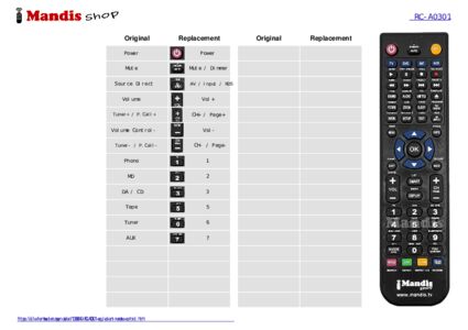This remote control fully replaces your RC-A0301 and offers all the functions of the original.
