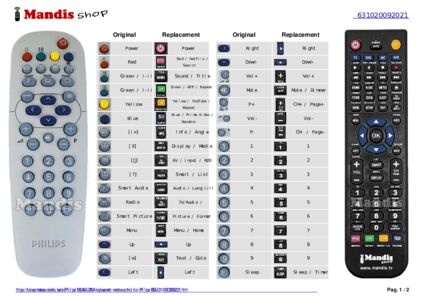 1. Look at the images of the two remote controls: the original (left) and the replacement (right).