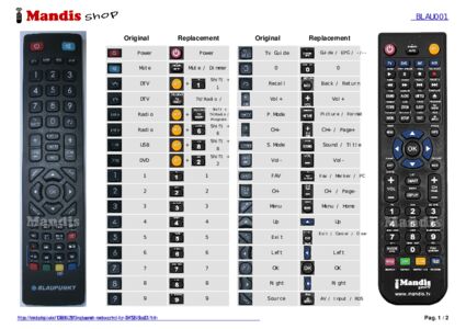 A document is included to help you use the new remote control easily, showing the button correspondence.