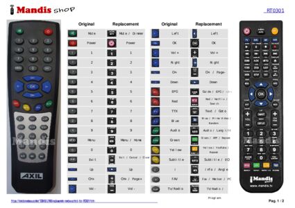 This remote control fully replaces your RT0301 and offers all the functions of the original.