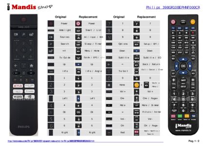 Below, we will show you the correspondence between each button on the original remote control and the button that performs the same function on the replacement remote control. In some cases, you may need to press the SHIFT key before pressing another button to perform certain actions. These additional functions are often not widely used and are included to facilitate understanding of the replacement remote control, or because the original remote control has more buttons than its equivalent.