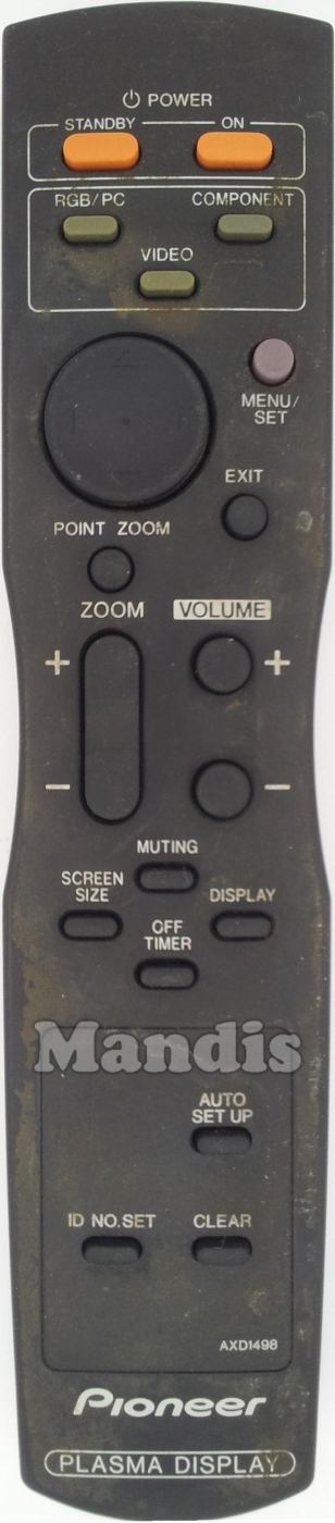 replacement remote control AXD 1498 used for televisions for the brand Pioneer.