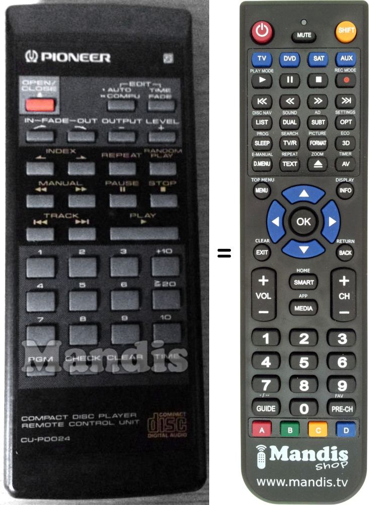 Replacement remote control Pioneer CU-PD024Available in stock27.50 € (VAT included)