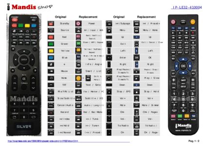 Below, we will show you the correspondence between each button on the original remote control and the button that performs the same function on the replacement remote control. In some cases, you may need to press the SHIFT key before pressing another button to perform certain actions. These additional functions are often not widely used and are included to facilitate understanding of the replacement remote control, or because the original remote control has more buttons than its equivalent.