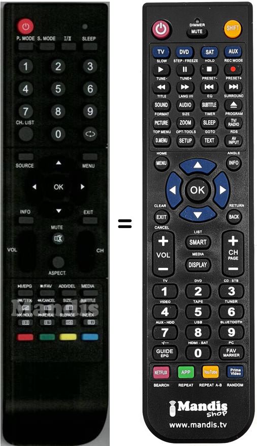 Remote control to replace the original and all its functions.