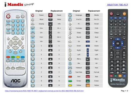 A document is included to help you use the new remote control easily, showing the button correspondence.