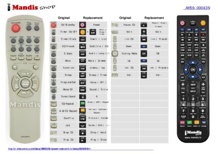 This remote control fully replaces your AH59-00043N and offers all the functions of the original.