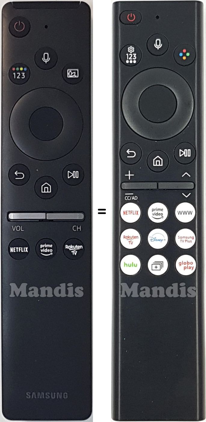Modernize your Samsung Smart TV with this elegant and functional remote control. It offers complete control and comfort thanks to its voice technology and ergonomic design. It works perfectly with all Samsung TVs with Bluetooth, ensuring a reliable and powerful connection. Featuring direct access buttons for your favorite apps like Netflix and Prime Video.