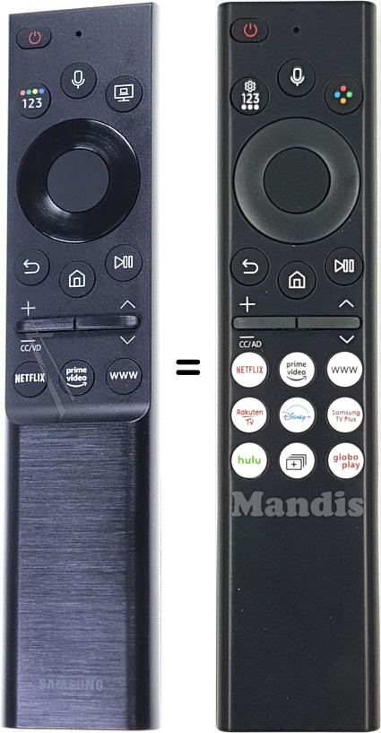 Modernize your Samsung Smart TV with this elegant and functional remote control. It offers complete control and comfort thanks to its voice technology and ergonomic design. It works perfectly with all Samsung TVs with Bluetooth, ensuring a reliable and powerful connection. Featuring direct access buttons for your favorite apps like Netflix and Prime Video.
