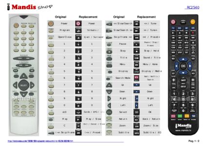 A document is included to help you use the new remote control easily, showing the button correspondence.