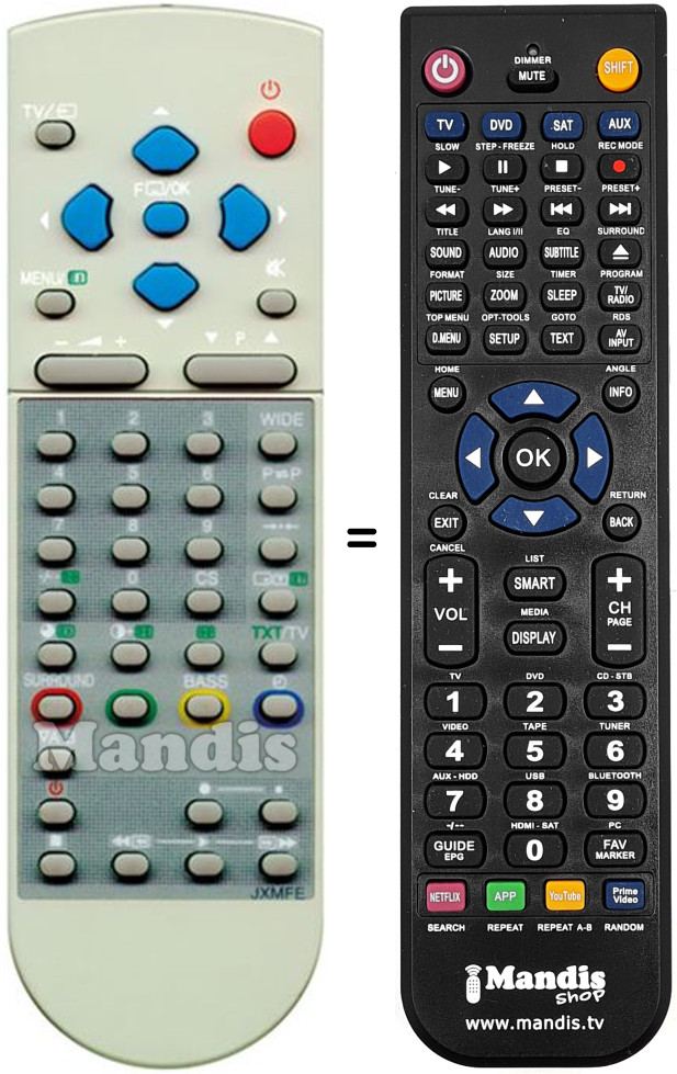 Remote control to replace the original and all its functions.