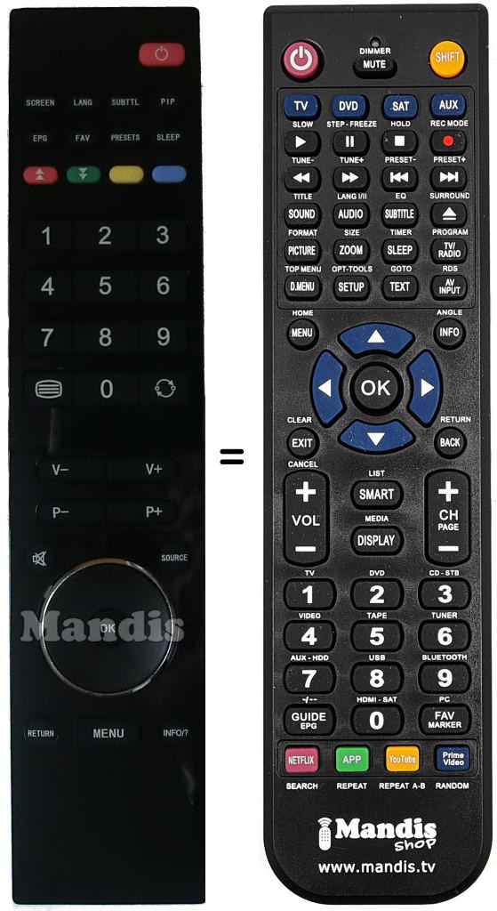 Remote control to replace the original and all its functions.