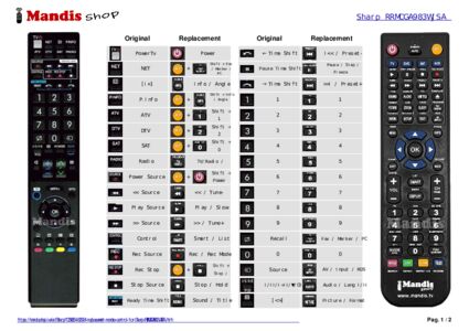 Below, we will show you the correspondence between each button on the original remote control and the button that performs the same function on the replacement remote control. In some cases, you may need to press the SHIFT key before pressing another button to perform certain actions. These additional functions are often not widely used and are included to facilitate understanding of the replacement remote control, or because the original remote control has more buttons than its equivalent.