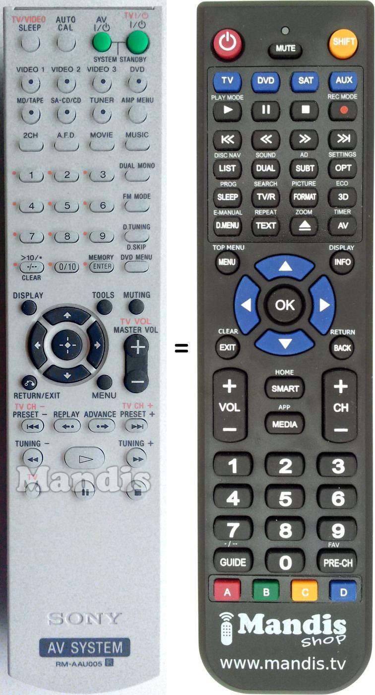 This remote control fully replaces your RM-AAU005 (147969111) and offers all the functions of the original.
