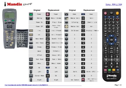 Below, we will show you the correspondence between each button on the original remote control and the button that performs the same function on the replacement remote control. In some cases, you may need to press the SHIFT key before pressing another button to perform certain actions. These additional functions are often not widely used and are included to facilitate understanding of the replacement remote control, or because the original remote control has more buttons than its equivalent.