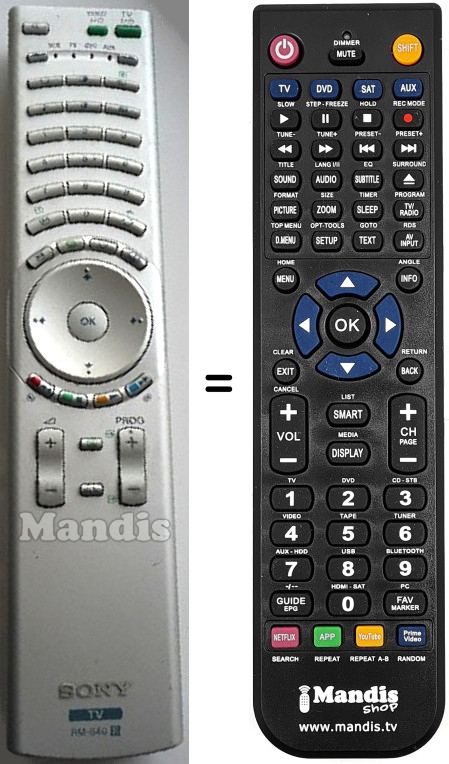 Remote control to replace the original RM-940 (147815911) and all its functions.
