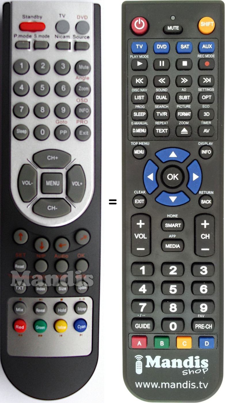 Below, we will show you the correspondence between each button on the original remote control and the button that performs the same function on the replacement remote control. In some cases, you may need to press the SHIFT key before pressing another button to perform certain actions. These additional functions are often not widely used and are included to facilitate understanding of the replacement remote control, or because the original remote control has more buttons than its equivalent.