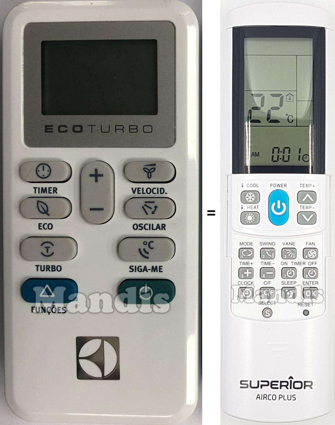 My LG air-conditioner's remote died and need replacement. AircoPlus did the job. I should point out that the code match did not correspond according to manufacturer's table. Let the auto-search code set up do the work. Also, excellent service by Mandis Remotes with a well-protected package.