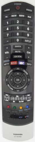 replacement remote control Ct90366 used for televisions for the brand Toshiba.