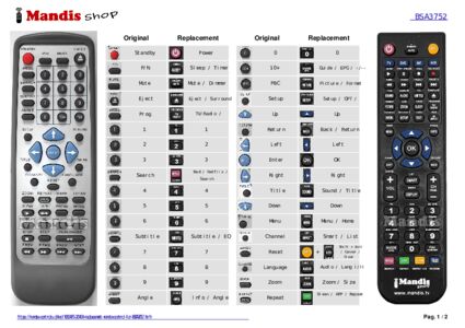 Below, we will show you the correspondence between each button on the original remote control and the button that performs the same function on the replacement remote control. In some cases, you may need to press the SHIFT key before pressing another button to perform certain actions. These additional functions are often not widely used and are included to facilitate understanding of the replacement remote control, or because the original remote control has more buttons than its equivalent.