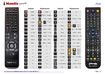 Below, we will show you the correspondence between each button on the original remote control and the button that performs the same function on the replacement remote control. In some cases, you may need to press the SHIFT key before pressing another button to perform certain actions. These additional functions are often not widely used and are included to facilitate understanding of the replacement remote control, or because the original remote control has more buttons than its equivalent.