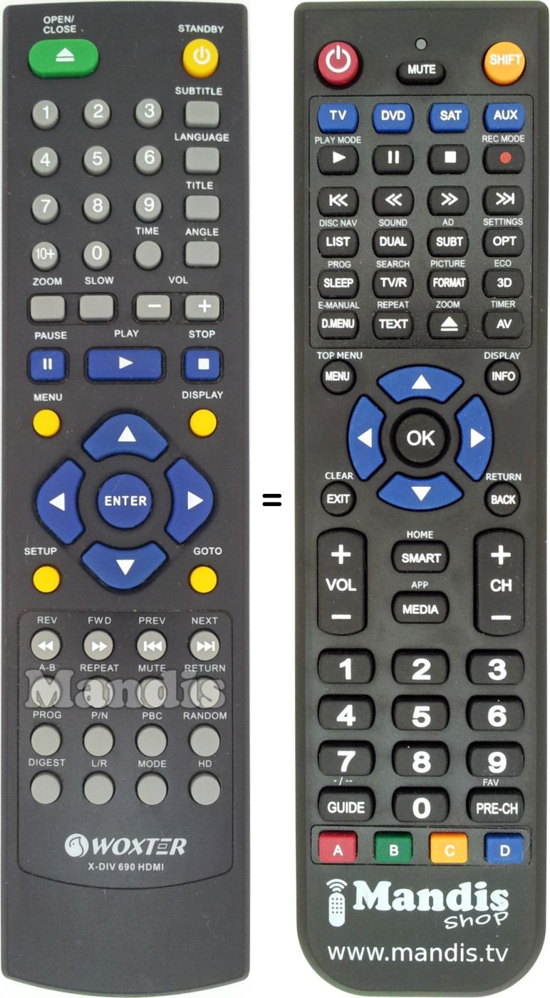 This remote control fully replaces your X-DIV690HDMI and offers all the functions of the original.