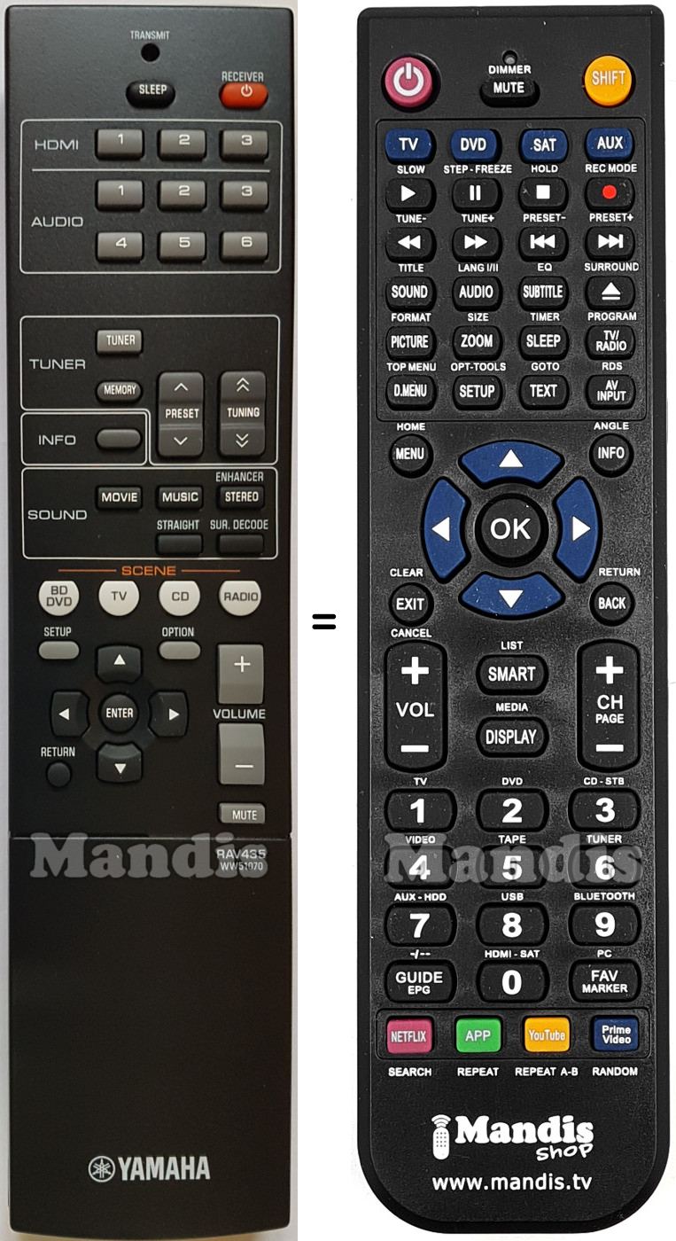 This remote control fully replaces your RAV435 (WW510700) and offers all the functions of the original.