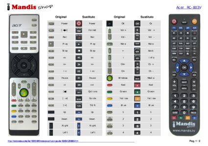 Inicio > Marcas > Mandos a distancia Acer > Mando a distancia para Acer RC-803V > Distribución interactiva de teclas Acer RC-803V
