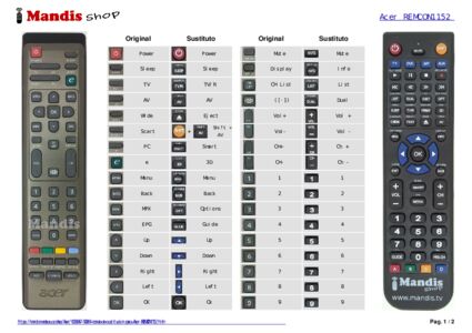 Inicio > Marcas > Mandos a distancia Acer > Mando a distancia para Acer REMCON1152 > Distribución interactiva de teclas Acer REMCON1152